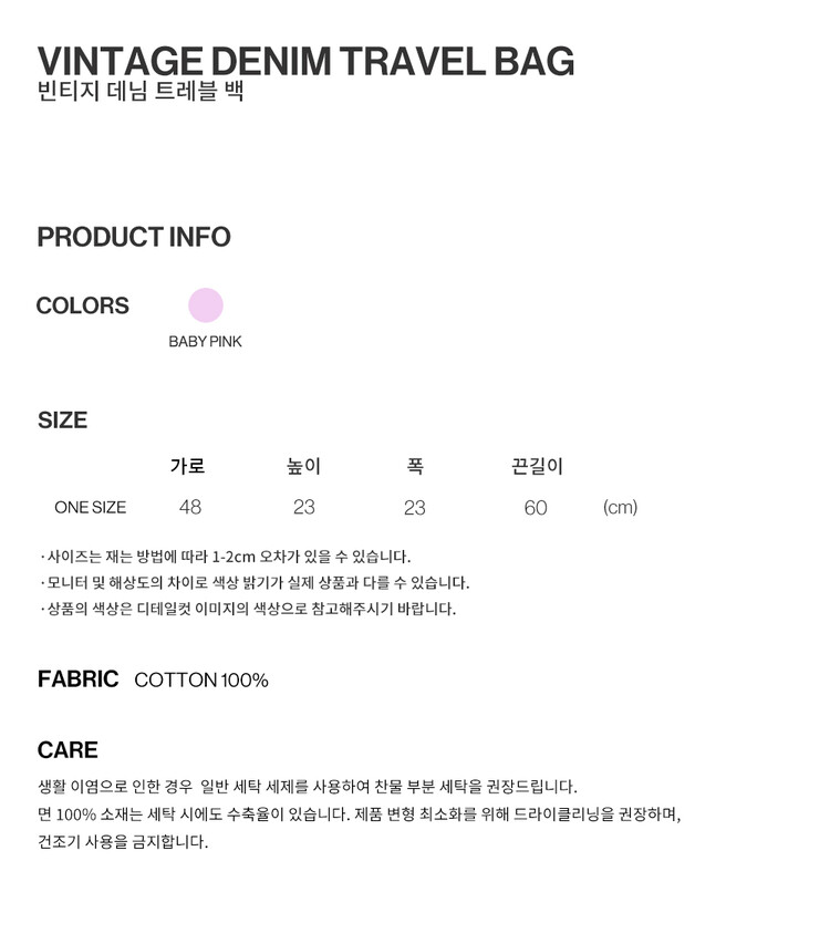 뉴 빈티지 데님 트레블백 'BABY PINK' 입니다.