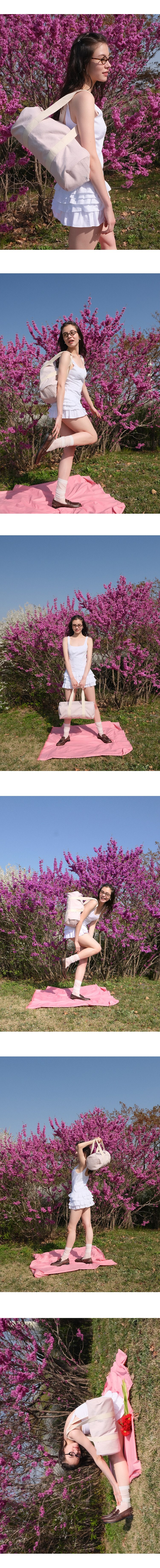 더플백 형태의 가방을 사랑스러운 베이비 핑크 컬러로 재해석하여 여행은 물론 일상에서 사용하기에 좋은 캐주얼한 제품으로 추천드립니다.
