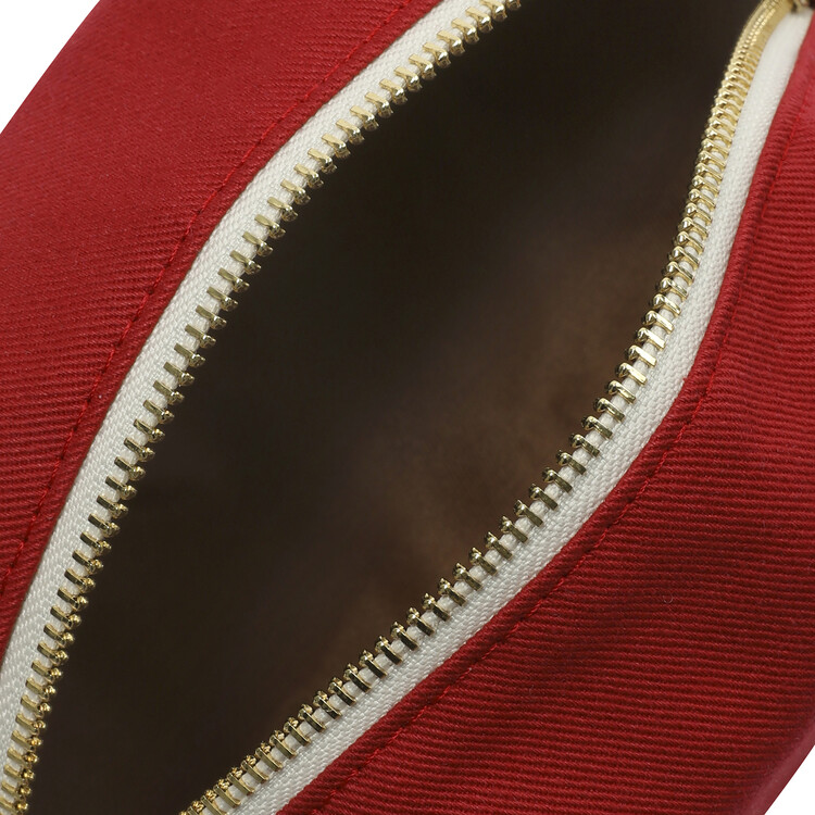 트레블백 원단과 동일한 원단으로 제작되었으며, 골드 지퍼를 사용하여 포인트를 주었습니다.