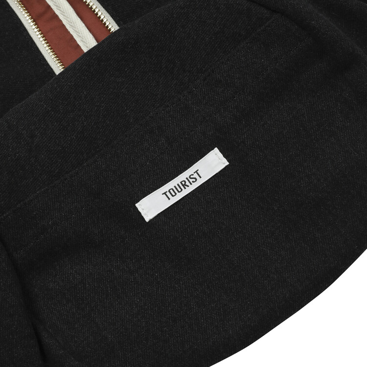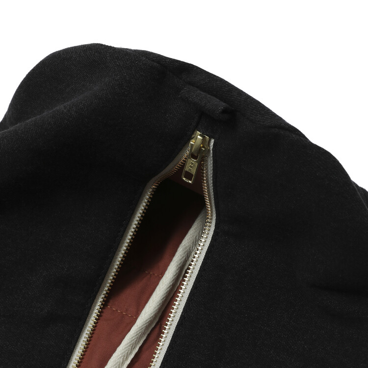 적갈색 안감을 사용하여 흑청과 골드 지퍼의 조화를 최대화하였습니다