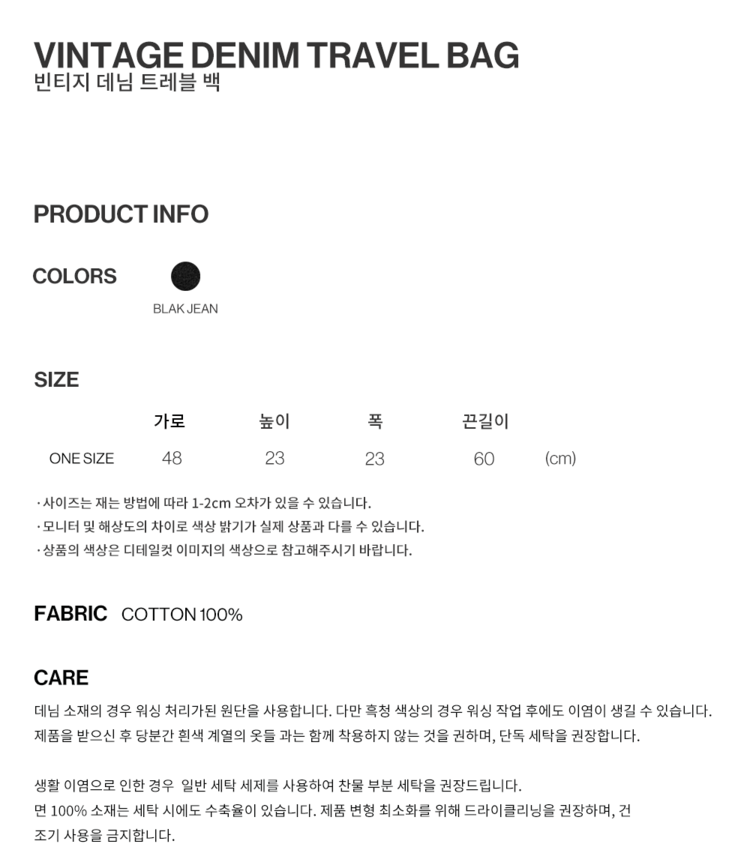 뉴 빈티지 데님 트레블백의 ‘BLACK JEAN’입니다.