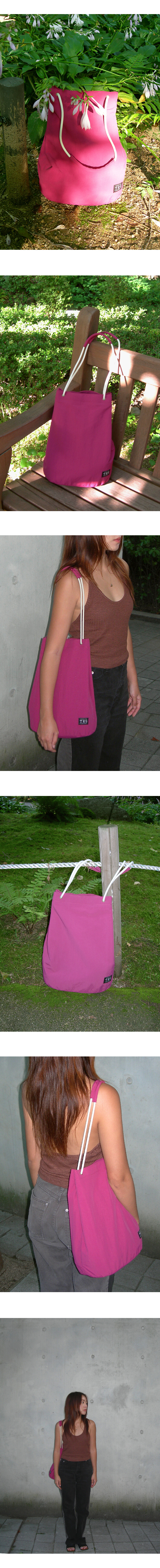 로프 소재로 제작되어 숄더 탑 부분에 얇은 폼을 덧대어 어깨의 부담을 줄였으며 각 원단 컬러로 포인트를 주었습니다.
