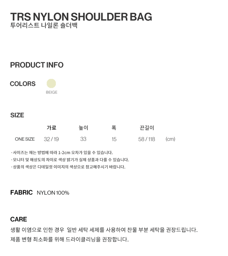 투어리스트 서울의 나일론 숄더백입니다. 100% 나일론 소재로 겉, 안감 모두 같은 원단을 사용하여 이중 봉제하였으며, 방수 처리가 된 나일론 소재로 장마철 잦은 비에도 착용하시기에 탁월합니다.