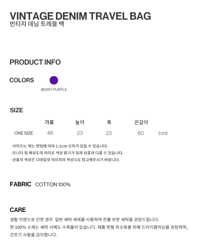 NEW VINTAGE DENIM TRAVEL BAG, BERRY PURPLE