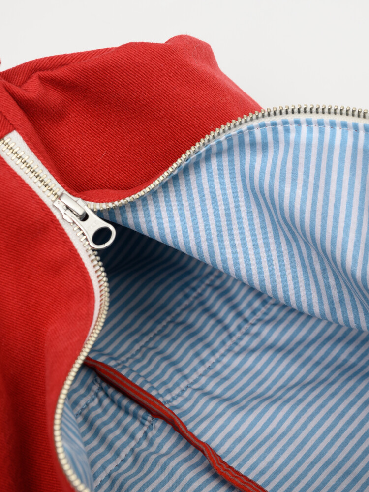 빈티지한 레드 컬러에 스트라이프 패턴의 안감을 사용하여 더욱 생동감이 넘치는 조화를 완성하였습니다.