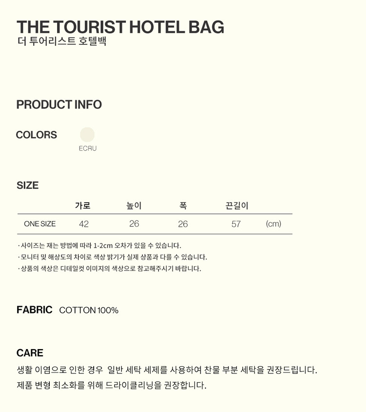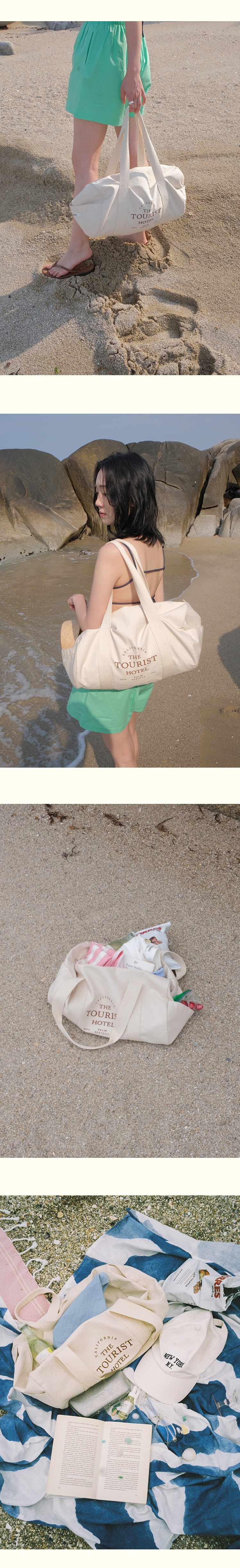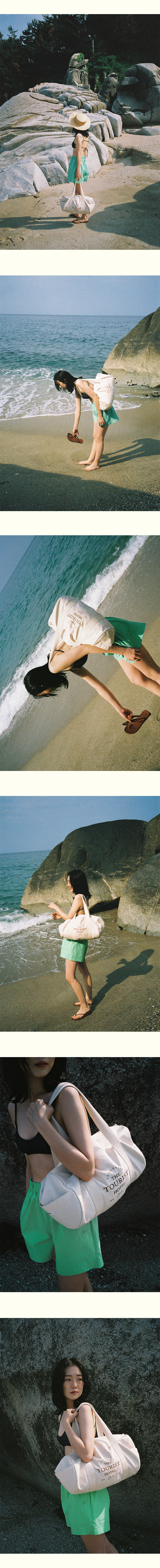 내추럴한 컬러에 새겨진 투어리스트 호텔 로고로 빈티지함을 한층 높였습니다. 트레블백과 달리 원단과 같은 컬러의 지퍼를 사용하여 통일감과 캐주얼함을 강조하였으며, 특히 바다가 떠오르는 소프트 블루 컬러의 배색 안감으로 포인트를 주었습니다.