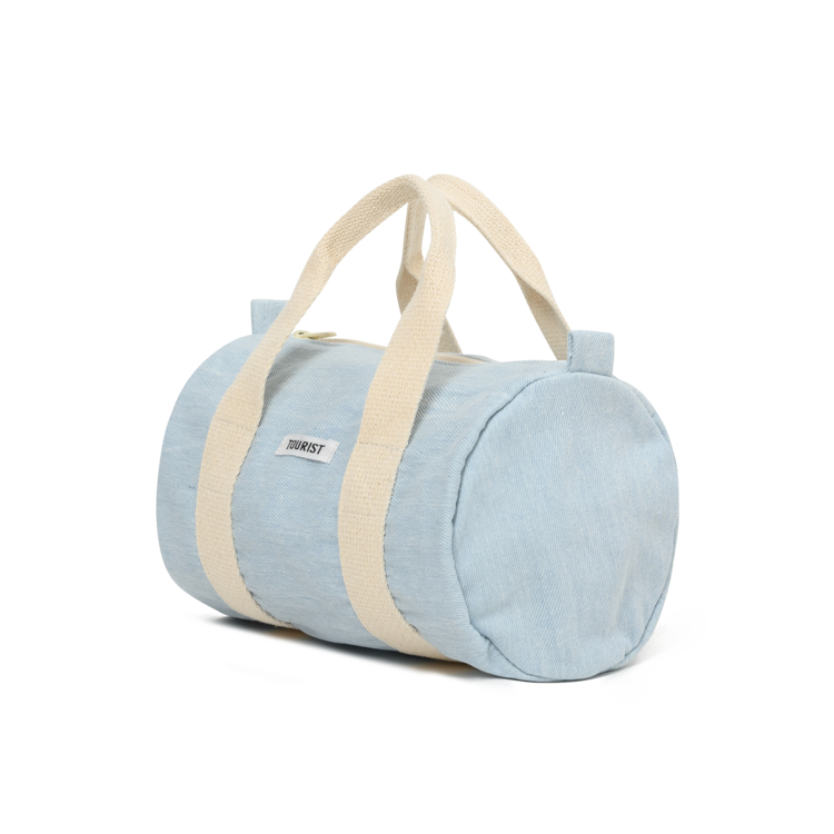 빈티지 데님 트레블백을 타이니 버전으로 재해석하였습니다. 전면 투어리스트 로고를 부착하여 포인트를 주었습니다.