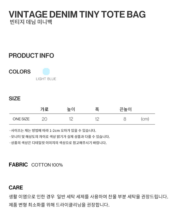 VINTAGE DENIM TINY TOTE BAG, LIGHT BLUE