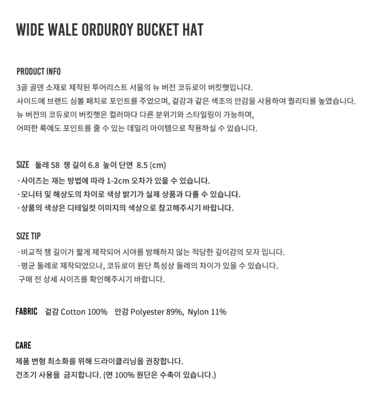 WIDE WALE CORDUROY BUCKET HAT, ECRU