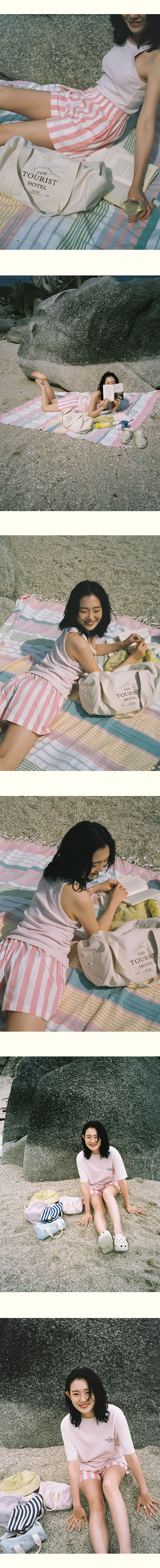 전면 왼쪽 주머니 아래 조개와 산호, 나뭇잎 모두를 형상화하여 여행을 꿈꾸는 ‘투어리스트’의 마음을 담은 심볼을 자수 처리하여 포인트를 주었습니다.