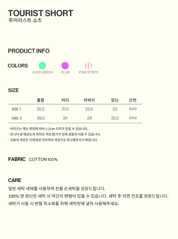 편안한 착용감을 우선으로 제작된 투어리스트 쇼츠는 길이 조절 끈이 없는 밴딩을 사용하여 44size부터 77size까지 착용이 가능합니다.